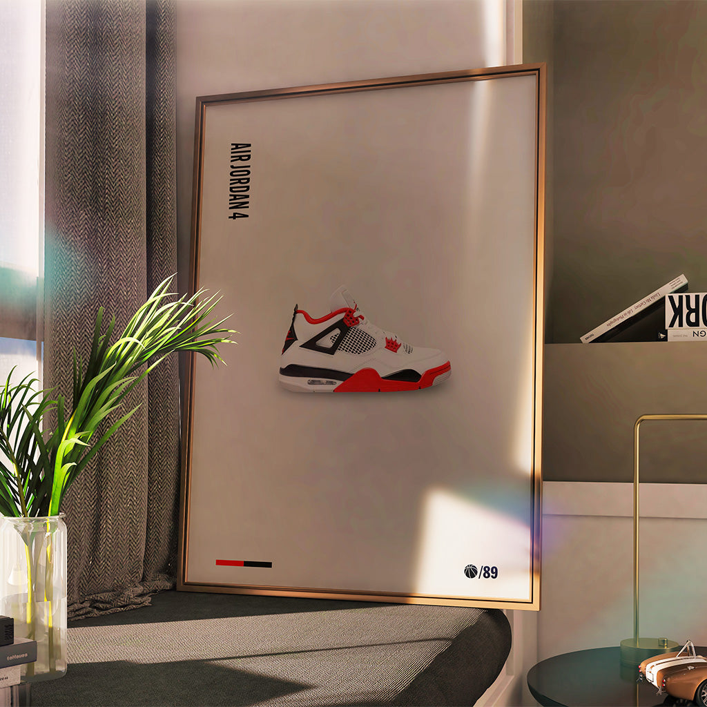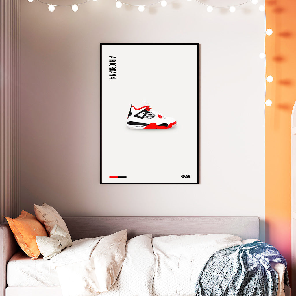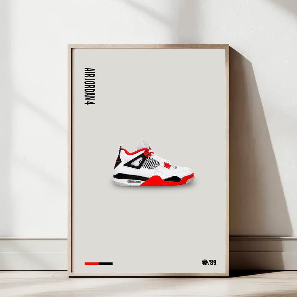 Celebrate an all-time favorite silhouette with this minimal Air Jordan 4 art print, featuring the iconic Fire Red colorway. With crisp lines, bold accents, and modern design, this poster perfectly captures the energy and heritage of one of the most beloved Jordans ever made.