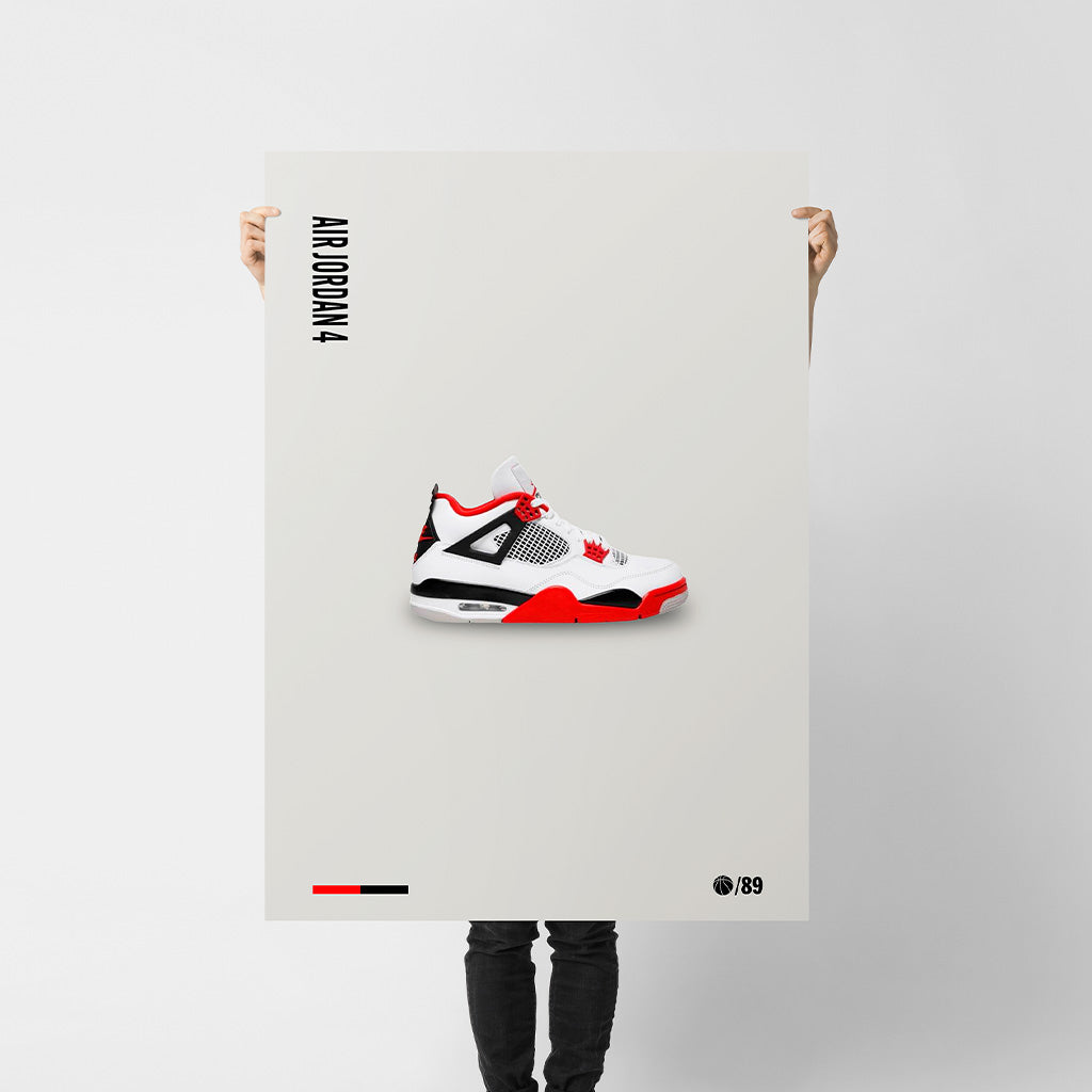 Air Jordan 4 Fire Red Poster — Minimal Sneaker Art Print
