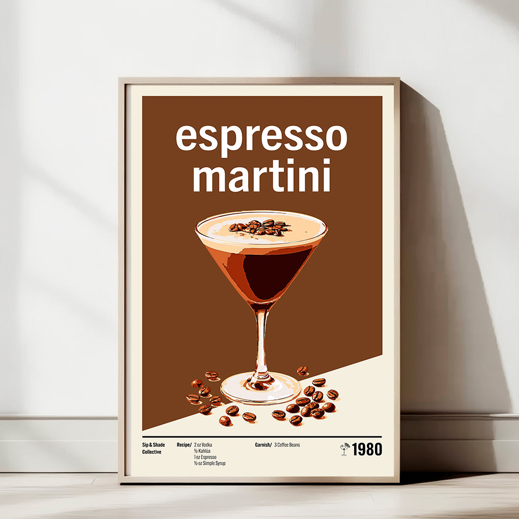 Elevate your space with the bold energy of this minimalist Espresso Martini art print. Designed with rich, coffee-inspired tones and complete recipe details, this poster celebrates the perfect blend of caffeine kick and cocktail sophistication — ideal for those who love a drink that’s both classy and fun.
