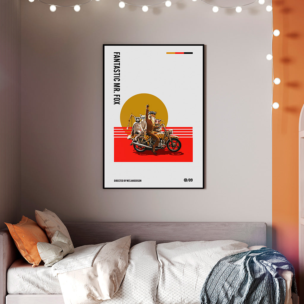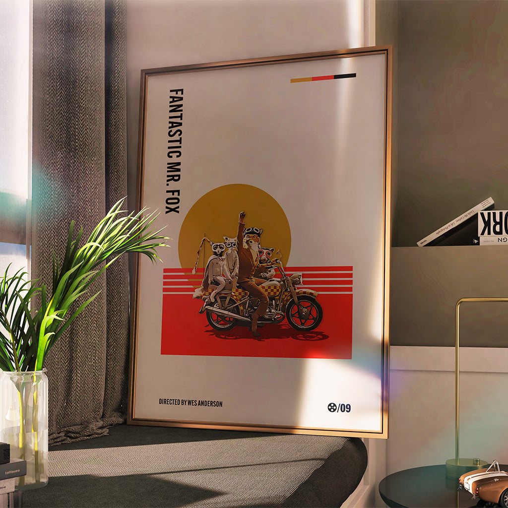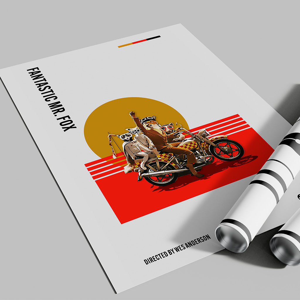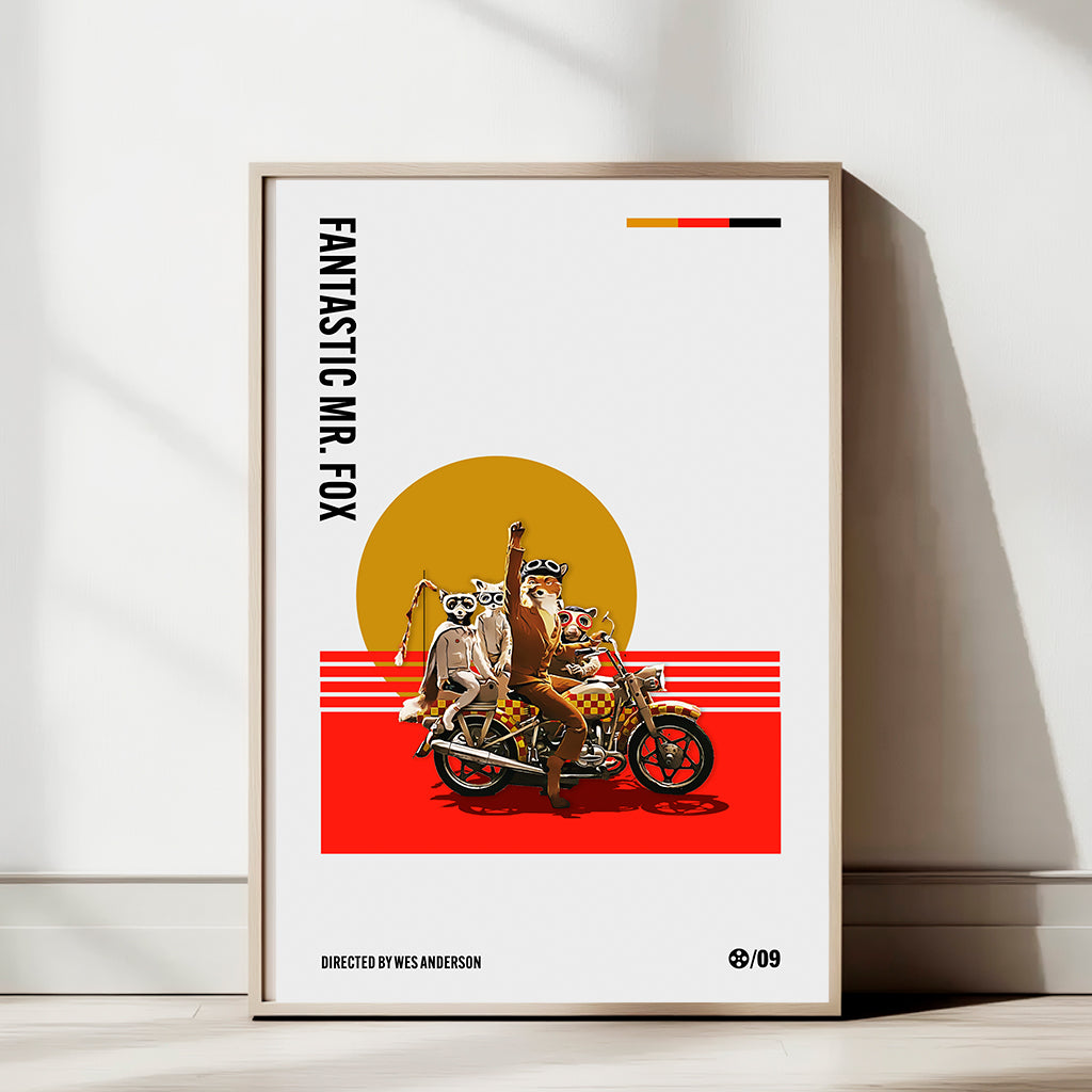 Celebrate the whimsical charm of Wes Anderson’s Fantastic Mr. Fox with this minimal art print. Featuring clean, bold design elements inspired by the film’s quirky aesthetic and beloved characters, this poster perfectly captures the spirit of Anderson’s iconic storytelling.
