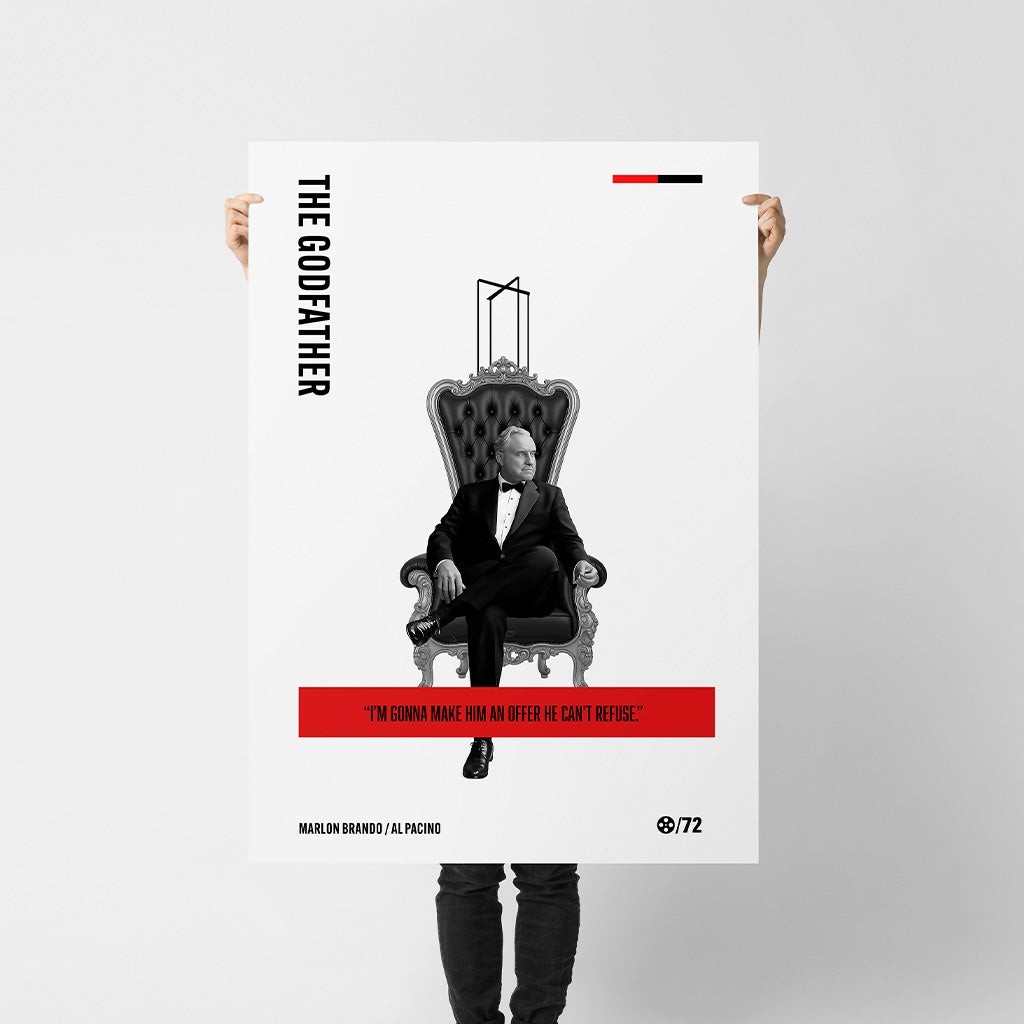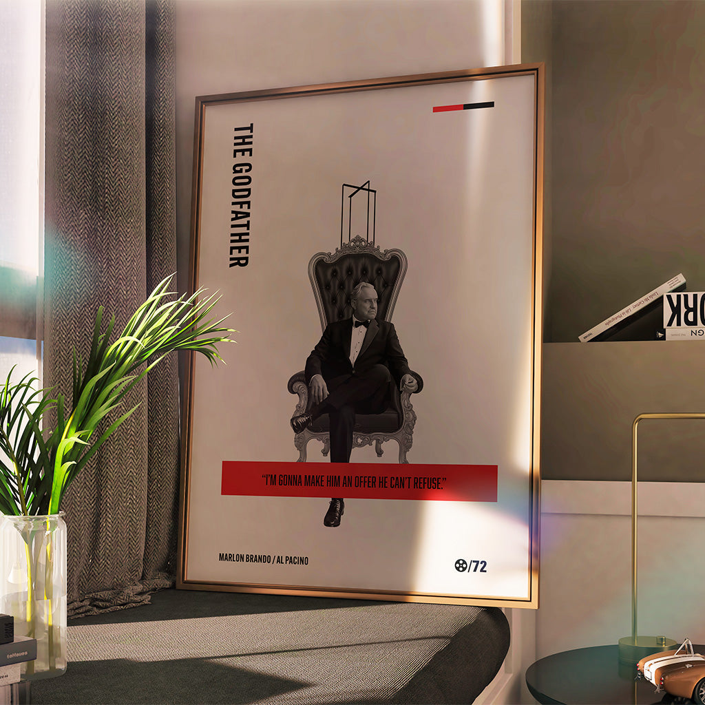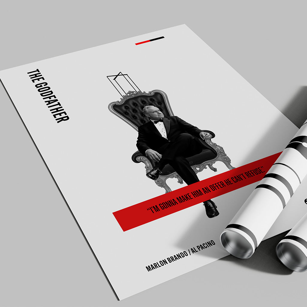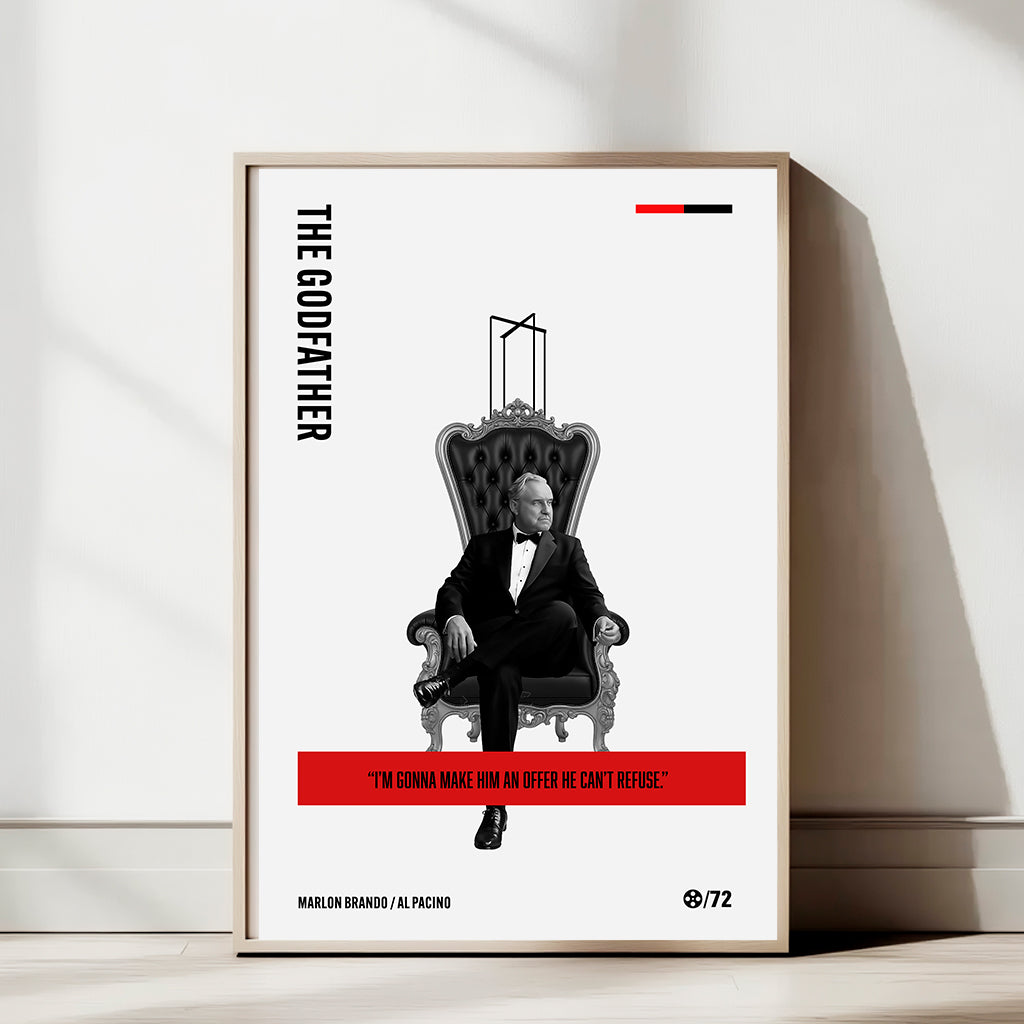 Bring cinematic history to your walls with this minimal The Godfather art print, featuring the legendary Marlon Brando as Don Vito Corleone. Designed with a sleek, modern aesthetic and bold, clean lines, this poster honors one of the most iconic films and performances of all time.